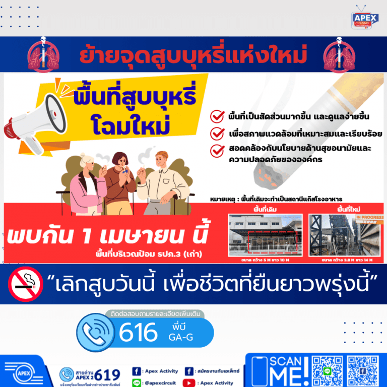 All ADM News (ฉบับที่ 21/2569) แจ้งย้ายพื้นที่สูบบุหรี่ใหม่ Apex 2