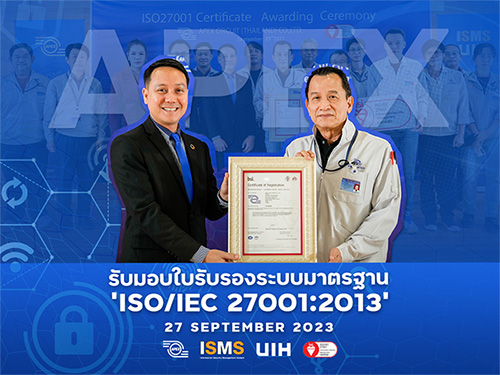 MIS News (ฉบับที่ 83) APEX รับมอบใบรับรองระบบมาตรฐาน ISO/IEC 27001:2013