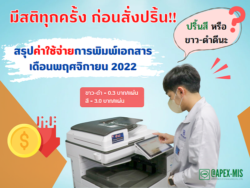 MIS News (ฉบับที่ 38) สรุปค่าใช้จ่ายการพิมพ์เอกสาร เดือนพฤศจิกายน 2022