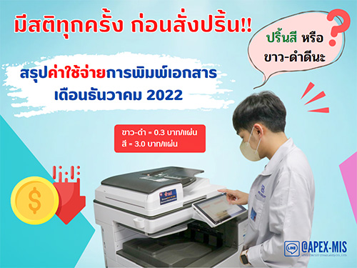 MIS News (ฉบับที่ 43) สรุปค่าใช้จ่ายการพิมพ์เอกสาร เดือนธันวาคม 2022
