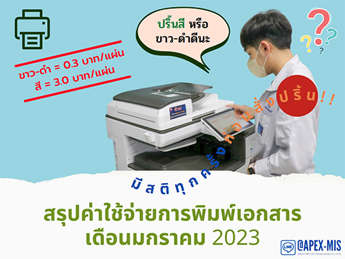 MIS News (ฉบับที่ 46) สรุปค่าใช้จ่ายการพิมพ์เอกสาร เดือนมกราคม 2023
