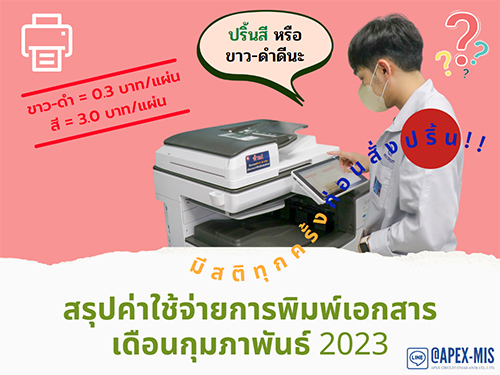 MIS News (ฉบับที่ 55) สรุปค่าใช้จ่ายการพิมพ์เอกสาร เดือนกุมภาพันธ์ 2023