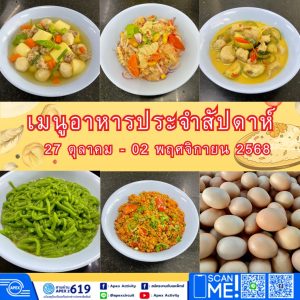 เมนูอาหารประจำสัปดาห์วันที่ 27 ตุลาคม – 02 พฤศจิกายน 2568