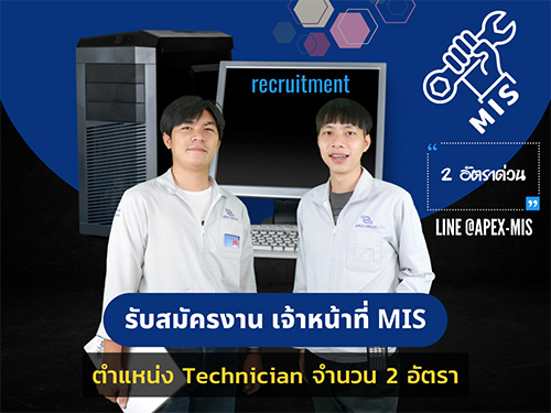 รับสมัครงาน เจ้าหน้าที่ MIS ตำแหน่ง Technician จำนวน 2 อัตรา