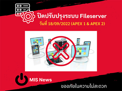 ประกาศ! ปิดปรับปรุงระบบ Fileserver วันที่ 18/09/2022 (APEX 1 & APEX 2)