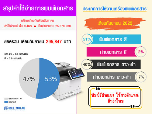 MIS News (ฉบับที่ 30) สรุปค่าใช้จ่ายการพิมพ์เอกสาร เดือนกันยายน 2022