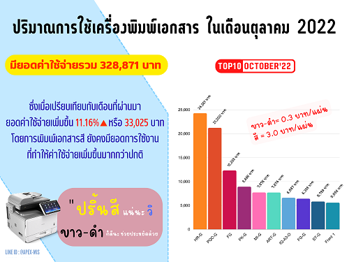 MIS News (ฉบับที่ 32) สรุปค่าใช้จ่ายการพิมพ์เอกสาร เดือนตุลาคม 2022