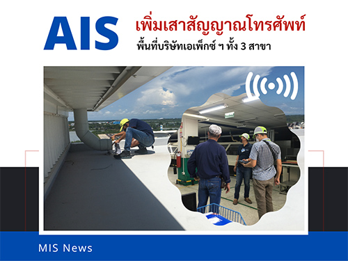 AIS เพิ่มเสาสัญญาณโทรศัพท์ พื้นที่บริษัทเอเพ็กซ์ ฯ ทั้ง 3 สาขา เพื่อขยายสัญญาณและรองรับการใช้งานที่เพิ่มขึ้น