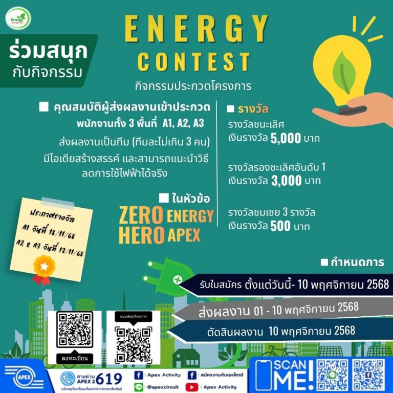ขอเชิญเข้าร่วมประกวด “Zero Energy Hero APEX”