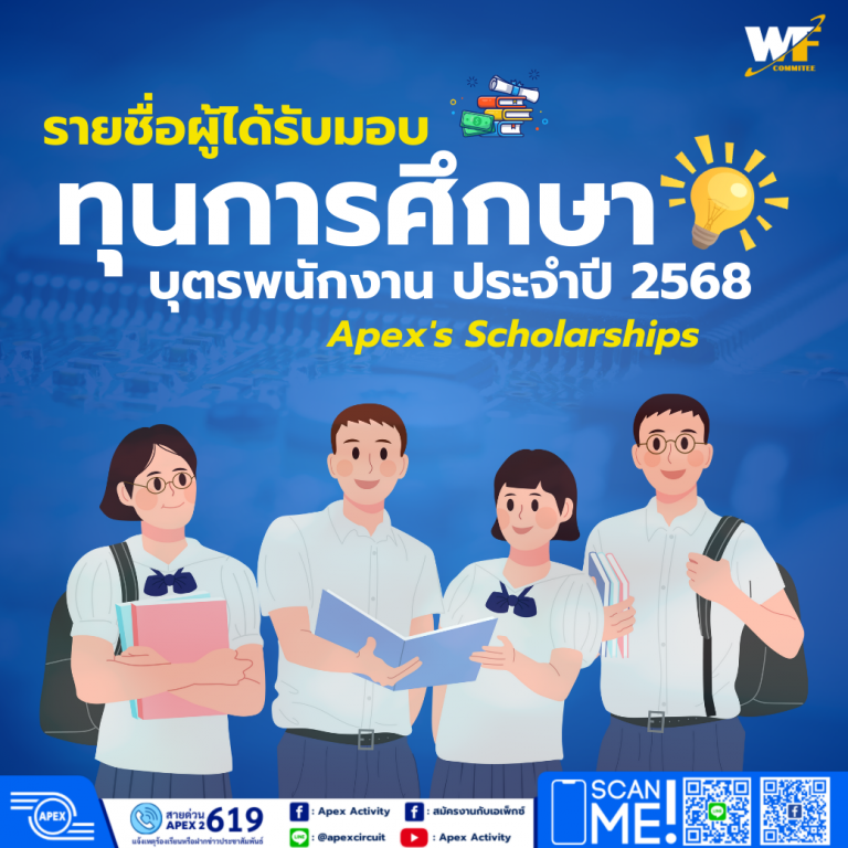 โครงการทุนการศึกษาบุตรพนักงาน ประจำปี 2568 (Apex’s Scholarships 2025)