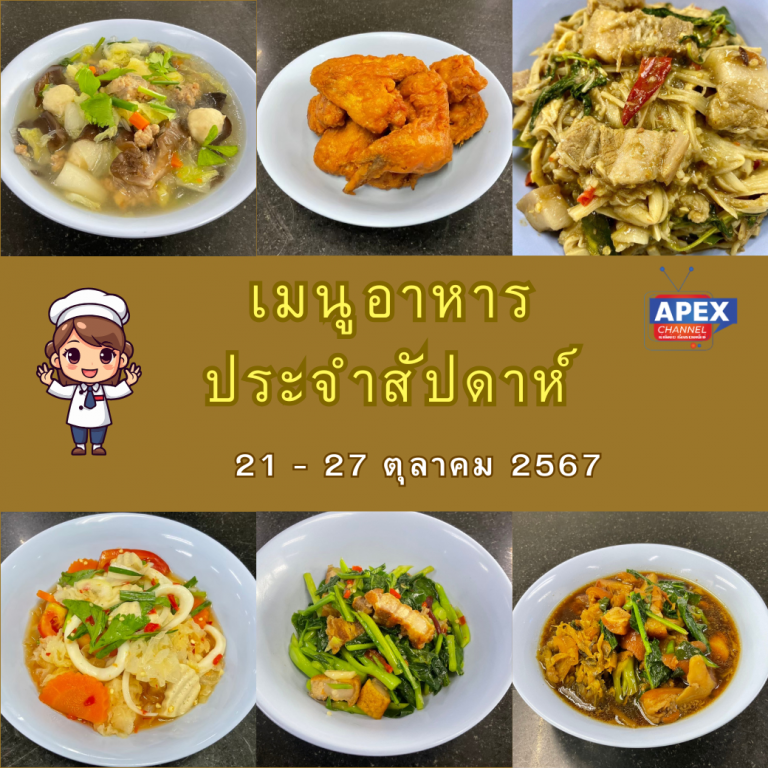 เมนูอาหารประจำสัปดาห์วันที่ 21 – 27 ตุลาคม 2567