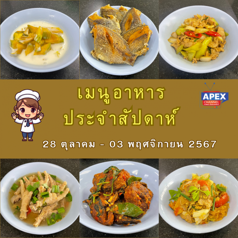 เมนูอาหารประจำสัปดาห์วันที่ 28 ตุลาคม – 03 พฤศจิกายน 2567