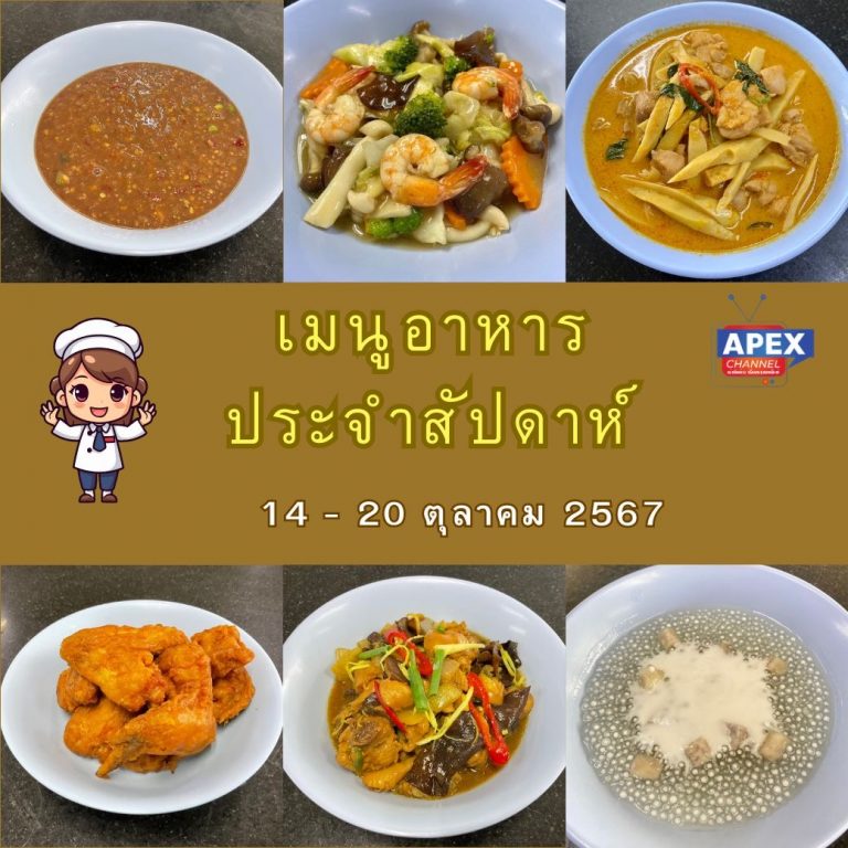 เมนูอาหารประจำสัปดาห์วันที่ 14 – 20 ตุลาคม 2567