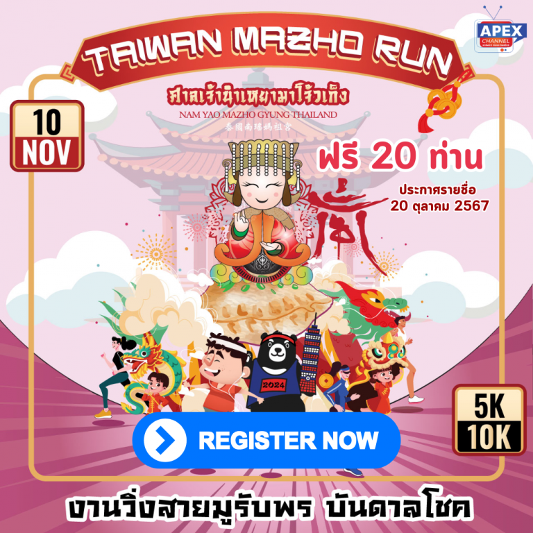 กิจกรรม : งานวิ่งเพื่อสุขภาพการกุศล TAIWAN MAZHO RUN ณ ศาลเจ้านำเหยามาโจ้วเก็ง (เจ้าแม่ทับทิม) จังหวัดสมุทรสาคร