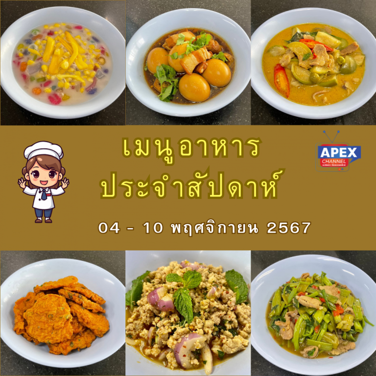 เมนูอาหารประจำสัปดาห์วันที่ 04 – 10 พฤศจิกายน 2567