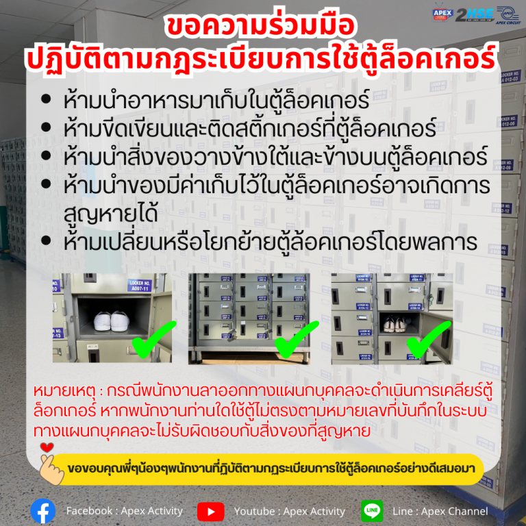 กฎระเบียบการใช้ตู้ล็อคเกอร์ประจำตัวพนักงาน