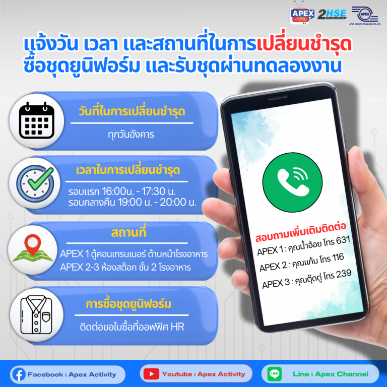 แจ้งวัน เวลา และสถานที่ในการเปลี่ยนชำรุดซื้อชุดยูนิฟอร์ม และรับชุดผ่านทดลองงาน