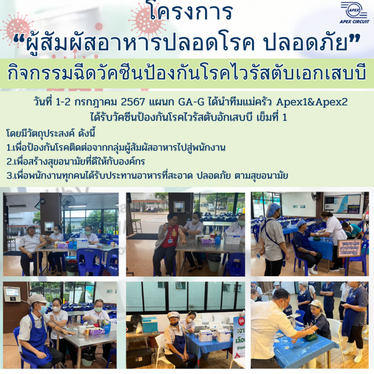 กิจกรรมฉีดวัคซีนป้องกันโรคไวรัสตับเอกเสบบี โครงการ “ผู้สัมผัสอาหารปลอดโรค ปลอดภัย” | วันที่ 1-2 สิงหาคม 2567