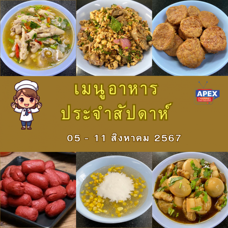 เมนูอาหารประจำสัปดาห์วันที่ 05 – 11 สิงหาคม 2567