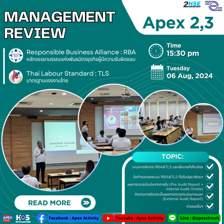 ✅เสร็จสิ้นเรียบร้อยแล้ว สำหรับการ Management Review Meeting RBA&TLS 2024 Apex2,3