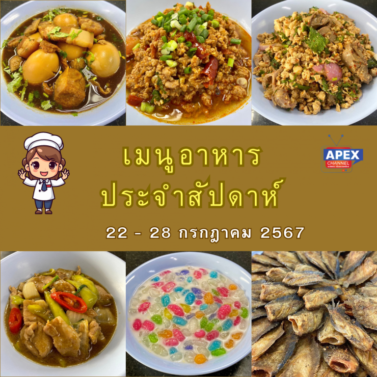 เมนูอาหารประจำสัปดาห์วันที่ 22 – 28 กรกฎาคม 2567