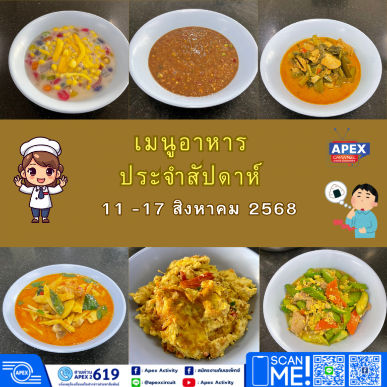 เมนูอาหาร ประจำสัปดาห์วันที่ 11 – 17 สิงหาคม 2568