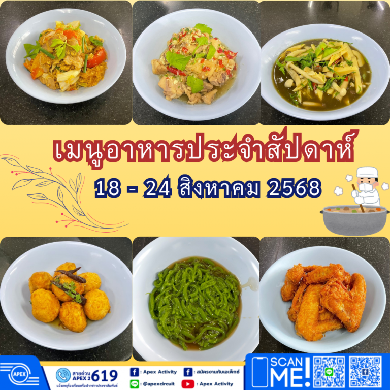 เมนูอาหารประจำสัปดาห์วันที่ 18 – 24 สิงหาคม 2568