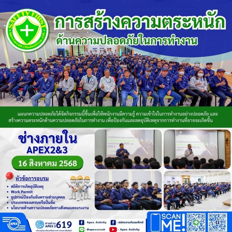 การสร้างความตระหนักด้านความปลอดภัยในการทำงานให้แก่ช่างภายใน พื้นที่ APEX2 และ APEX3
