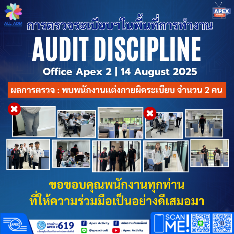 สรุปผล การตรวจระเบียบฯในพื้นที่การทำงาน | Office Apex 2
