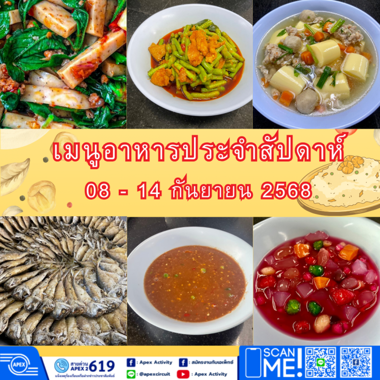 เมนูอาหารประจำสัปดาห์วันที่ 08 – 14 กันยายน 2568