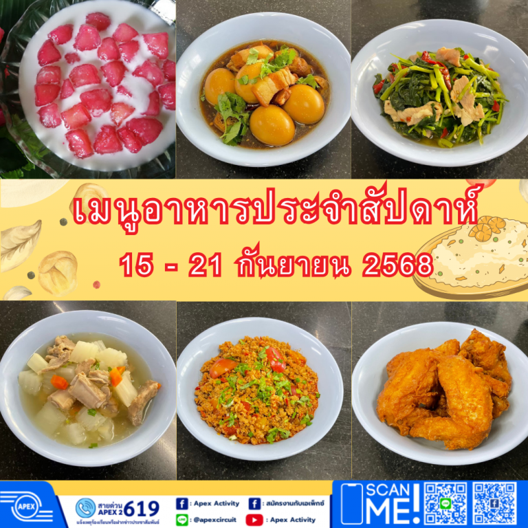 เมนูอาหารประจำสัปดาห์วันที่ 15 – 21 กันยายน 2568