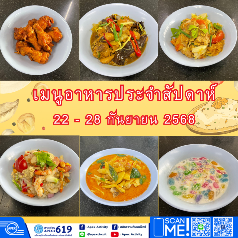 เมนูอาหารประจำสัปดาห์วันที่ 22 – 28 กันยายน 2568