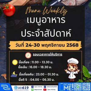 เมนูอาหารประจำสัปดาห์วันที่ 24-30 พฤศจิกายน 2568
