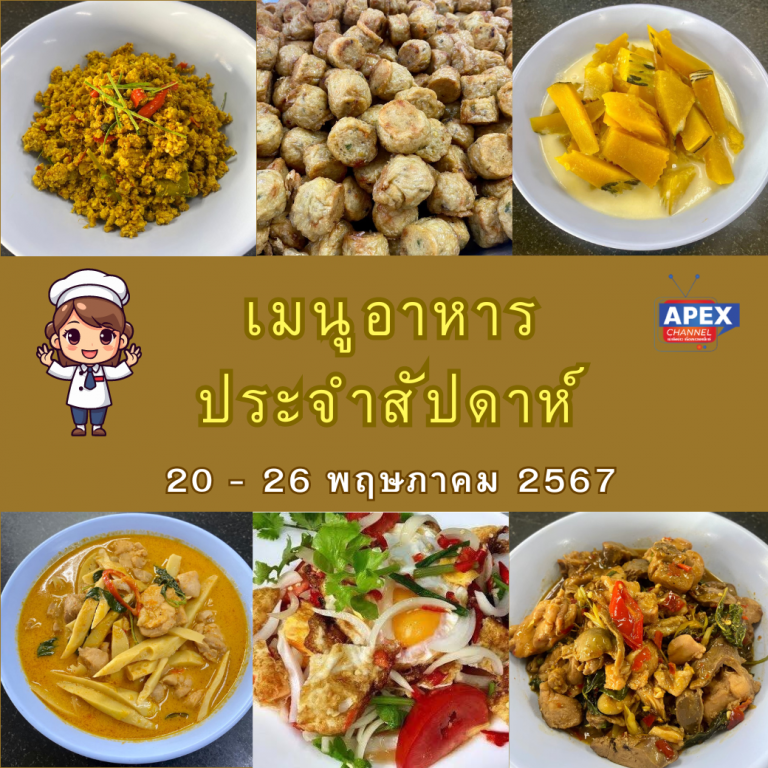 เมนูอาหารประจำสัปดาห์วันที่ 20 – 26 พฤษภาคม 2567