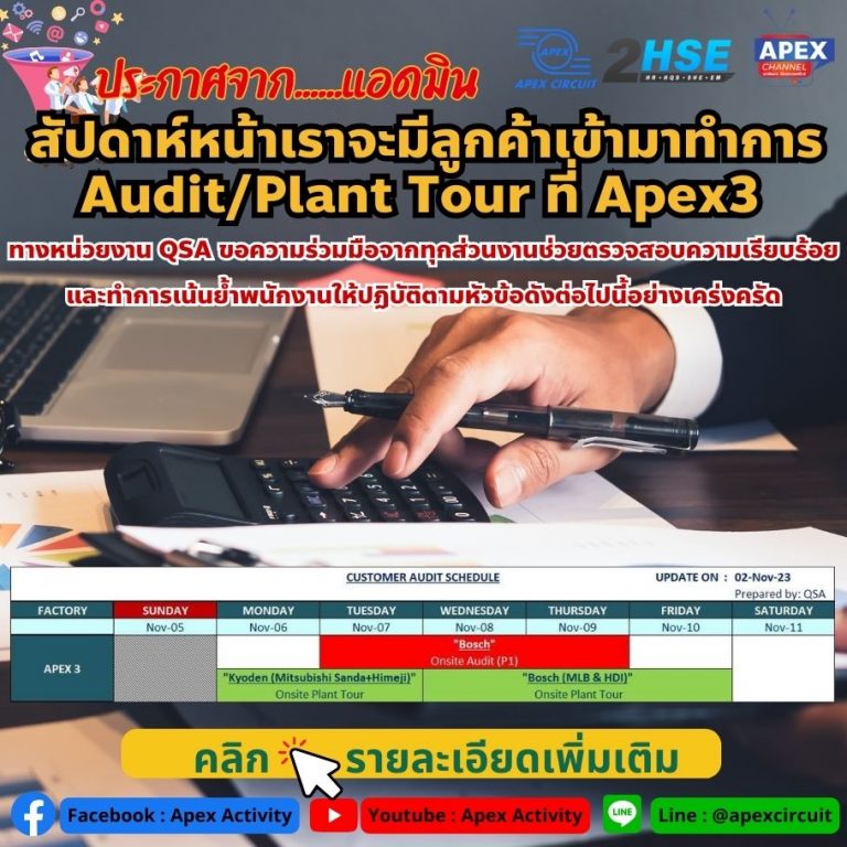 📌สัปดาห์หน้าเราจะมีลูกค้าเข้ามาทำการ Audit/Plant Tour ที่ Apex3😍