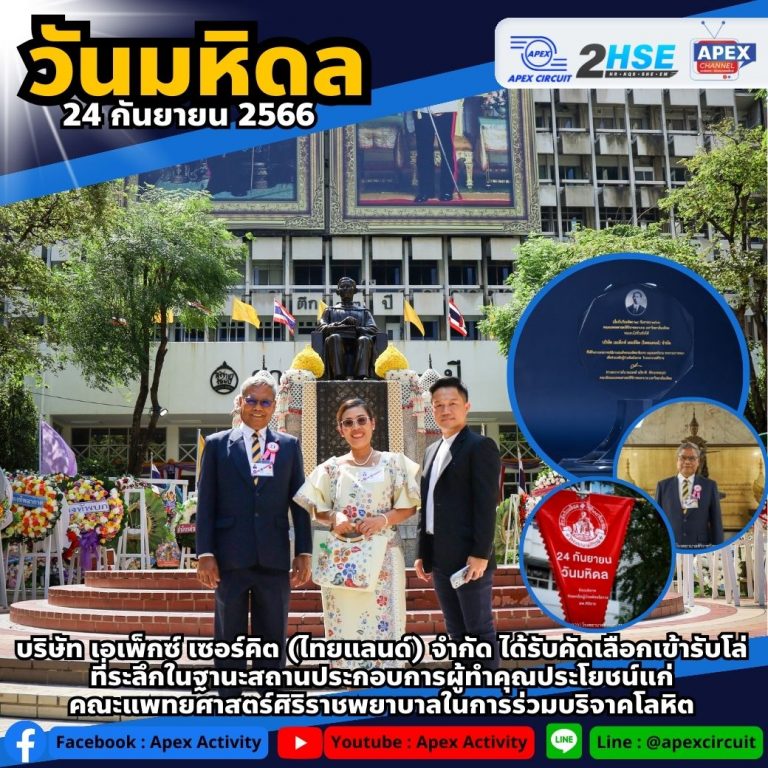 👉บริษัท เอเพ็กซ์ เซอร์คิต (ไทยแลนด์) จำกัด ได้รับคัดเลือกเข้ารับโล่ที่ระลึกในฐานะสถานประกอบการผู้ทำคุณประโยชน์แก่คณะแพทยศาสตร์ศิริราชพยาบาล👩⚕️👨⚕️
