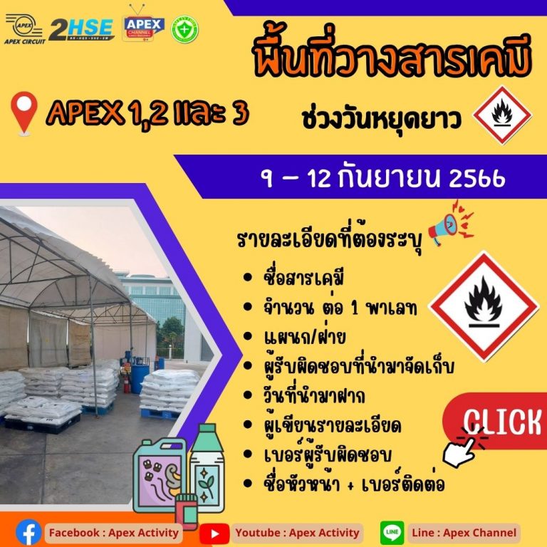 👉ประชาสัมพันธ์พื้นที่การวางสารเคมี APEX 1, 2 และ 3ช่วงวันหยุดยาว 9 – 12 กันยายน 2566