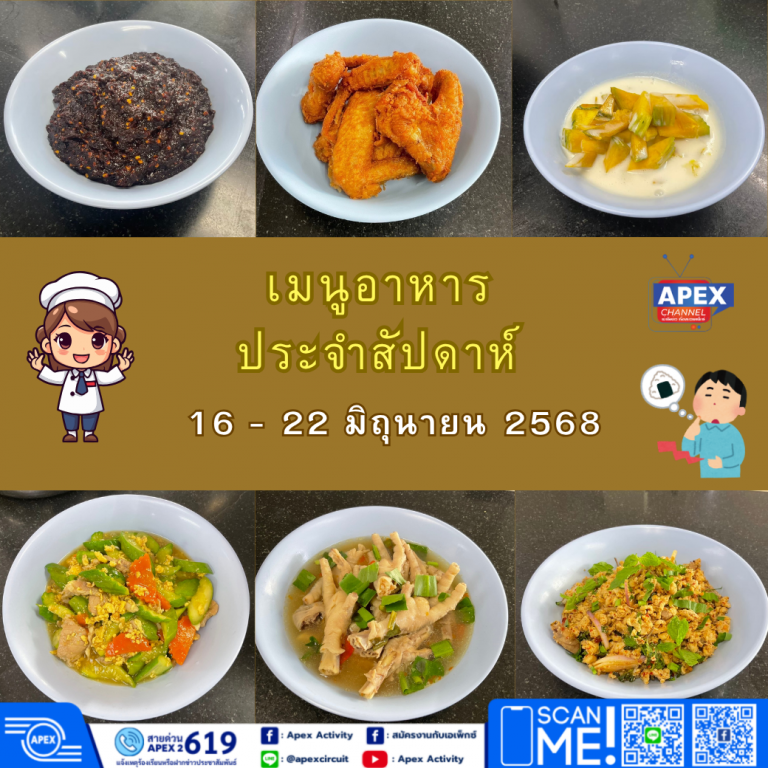 เมนูอาหารประจำสัปดาห์วันที่ 16 – 22 มิถุนายน 2568