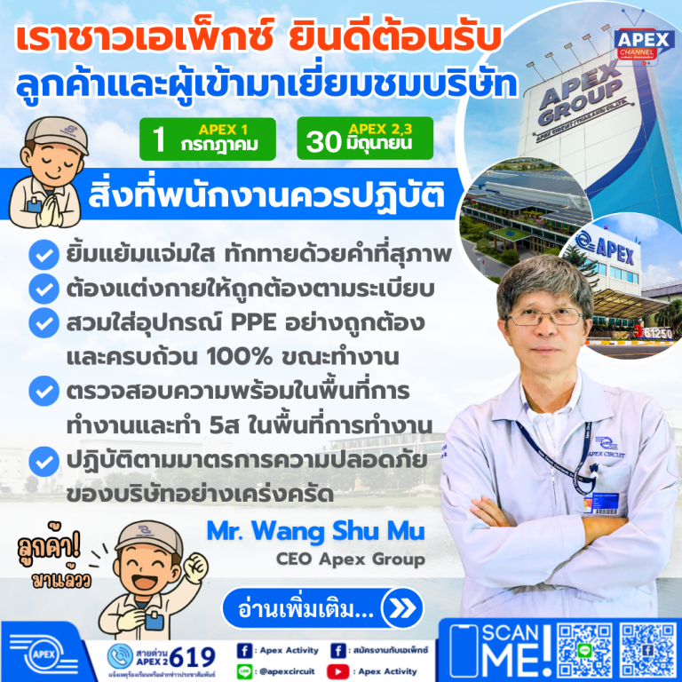 เราชาวเอเพ็กซ์ ยินดีต้อนรับลูกค้าหรือผู้เข้ามาเยี่ยมชมบริษัทฯ