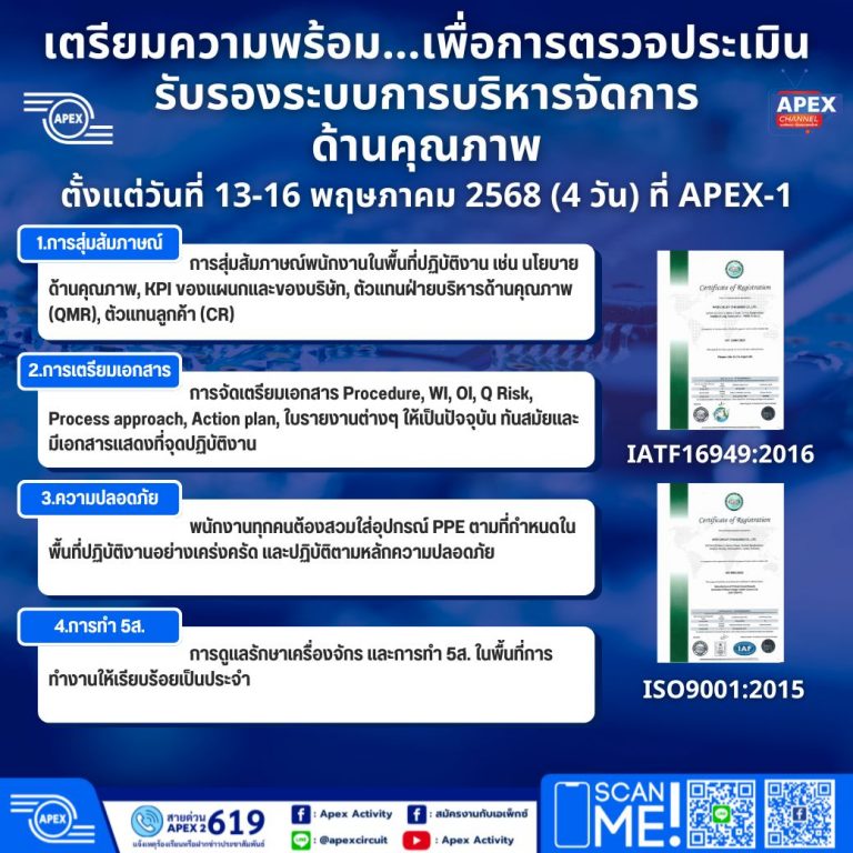 เตรียมความพร้อม…เพื่อการตรวจประเมินรับรองระบบการบริหารจัดการด้านคุณภาพ (IATF16949:2016, ISO9001:2015) | 13-16 May 2025