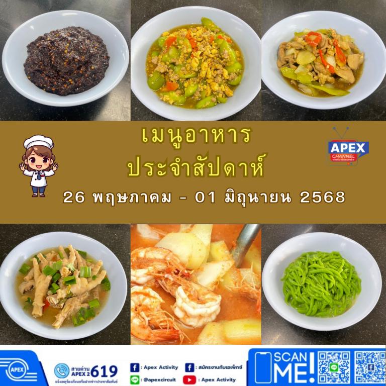 เมนูอาหารประจำสัปดาห์วันที่ 26 พฤษภาคม – 01 มิถุนายน 2568