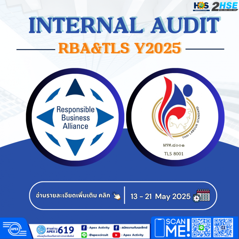 เตรียมพร้อม Internal Audit RBA & TLS Apex Group วันที่ 13-21 พฤษภาคม 2025