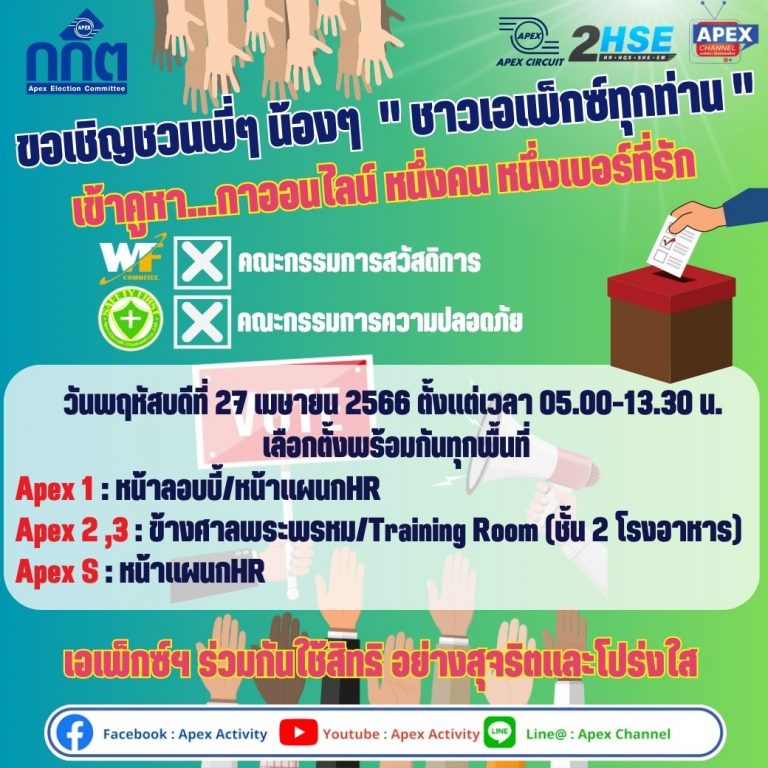 📢ขอเชิญชวนพี่ๆน้องๆ ชาว Apex ใช้สิทธิเลือกตั้งคณะกรรมการสวัสดิการ และคณะกรรมการความปลอดภัย🤟