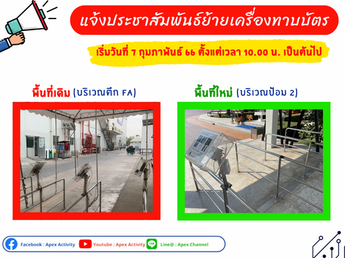 (2HSE News ฉบับที่ 39/07Feb23) ขอแจ้งประชาสัมพันธ์เรื่องการย้ายเครื่องทาบบัตร✅👍