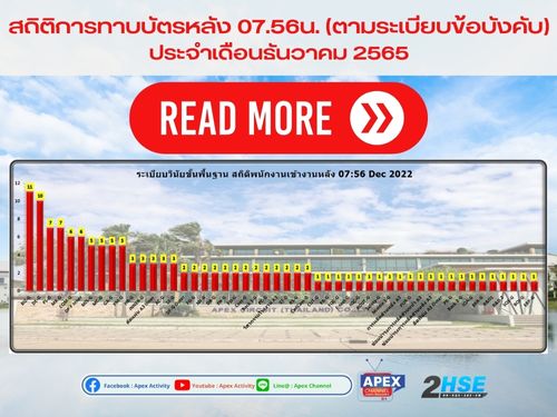 (2HSE News ฉบับที่ 5/05Jan23) สถิติการทาบบัตรหลังเวลา 07.56น. ประจำเดือนธันวาคม 2022 และเริ่มต้นใหม่ เข้มยิ่งกว่าเดิม✅🕗
