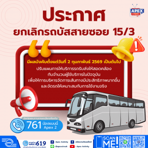 All ADM News (ฉบับที่ 6/2569) ยกเลิกรถบัสรับ-ส่ง สายซอย 15 คันที่ 3 Apex 2,3