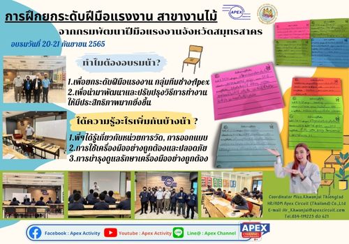 📢📢วันที่ 20-21 กันยายน 2565 ทางหน่วยงานฝึกอบรมได้มีการจัดอบรมให้ความรู้แก่พนักงานในหลักสูตร “การฝึกยกระดับฝีมือแรงงานสาขางานไม้”