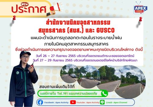 นักงานนิคมอุตสาหกรรมสมุทรสาคร (สนส.) และ GUSCO มีแผนจะดำเนินการขุดลอกตะกอนในรางระบายน้ำฝน😎