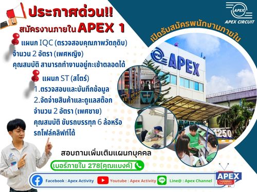 📢มาแล้วจ้า อย่าปล่อยให้โอกาสหลุดลอย😁👉วันนี้ทางแผนก IQC และ ST เปิดรับสมัครพนักงานภายใน ประจำพื้นที่ Apex 1