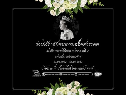 บริษัทเอเพ็กซ์ เซอร์คิต(ไทยแลนด์)จำกัด ขอแสดงความร่วมแสดงการไว้อาลัยต่อการเสด็จสวรรคตของสมเด็จพระราชินีนาถเอลิซาเบธที่ 2